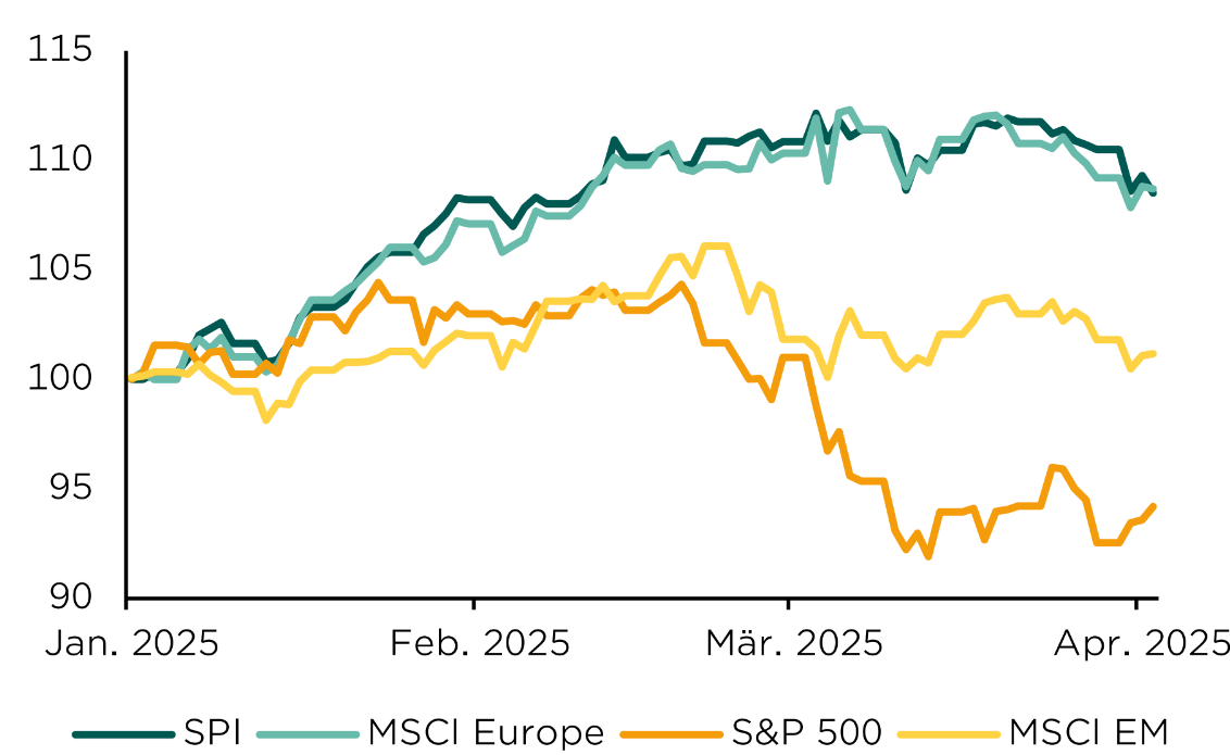 YTD-Performance ausgewählter Aktienmärkte (in CHF)